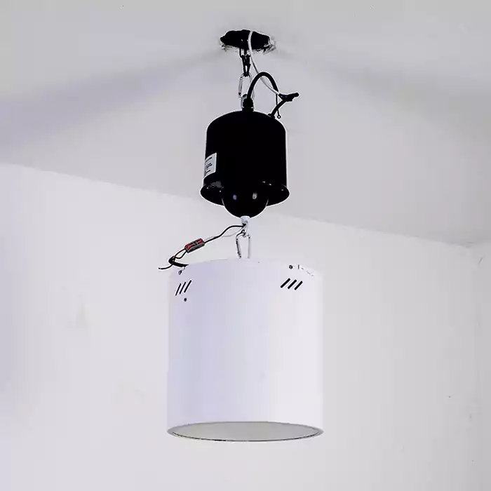 Our lighting lift devices are designed specifically for high-bay factories and logistics warehouses. Without the need for scaffolding, lighting fixtures can be lowered to the ground with a single button press, reducing maintenance costs and making lighting cleaning and maintenance safer, simpler, and more efficient.
